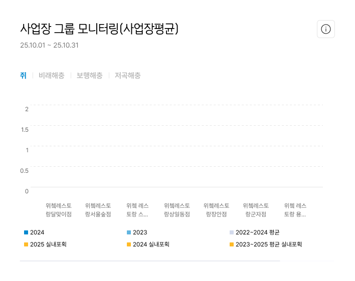 각 사업장의 점검 결과와 관리 패턴이 한눈에 보이기 때문에 지점 간 위생·관리 수준의 차이를 빠르게 이해할 수 있어요.